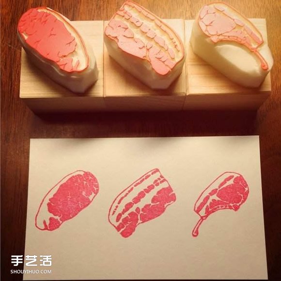 Twitter上一位推主どんてんの判子平常就很喜欢制作橡皮雕刻印章~这次更是突发奇想,制作了「肉」印章!